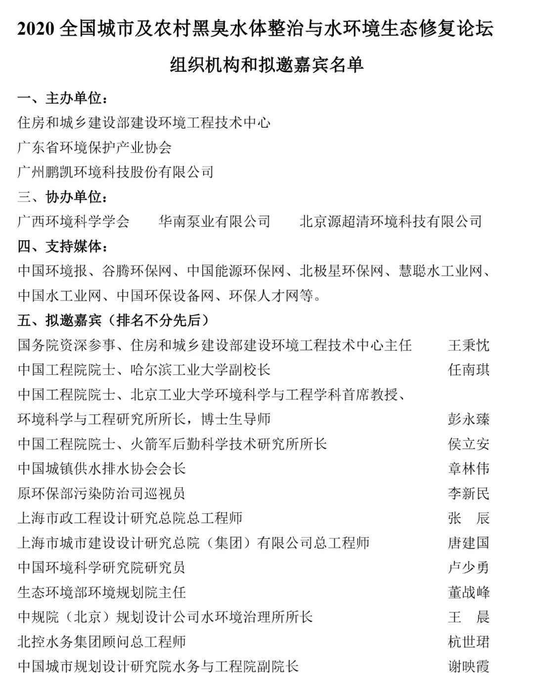 《2020全国城市及农村黑臭水体整治与水环境生态修复论坛组织架构和拟邀嘉宾名单》