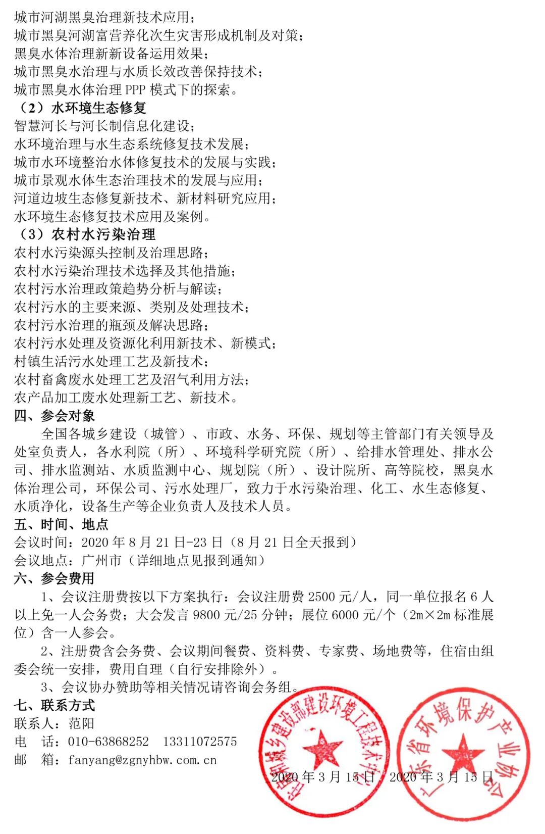 《关于召开“2020全国城市及农村黑臭水体整治与水环境生态修复论坛”的通知》